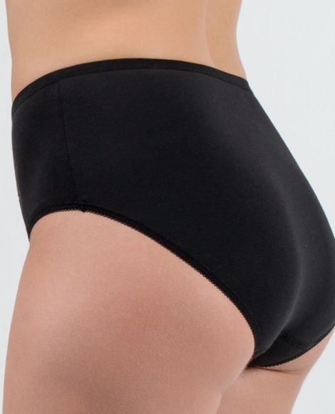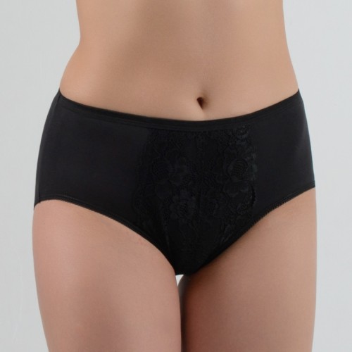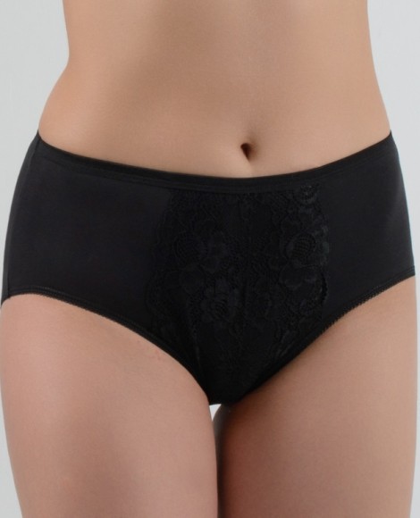 Трусы женские модель Макси "Линда" с высокой линией талии, со средней высотой бока, комфортная закрытая посадка по ягодицам, по ножкам ажурная резинка, в центре вставка из эластичного кружева в тон ткани.