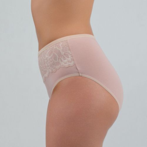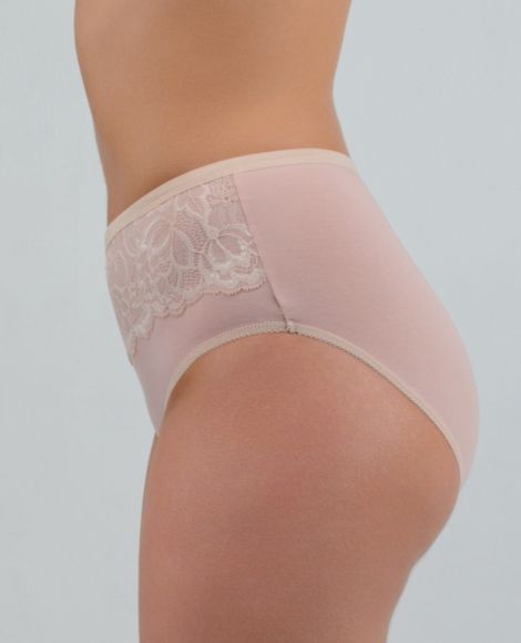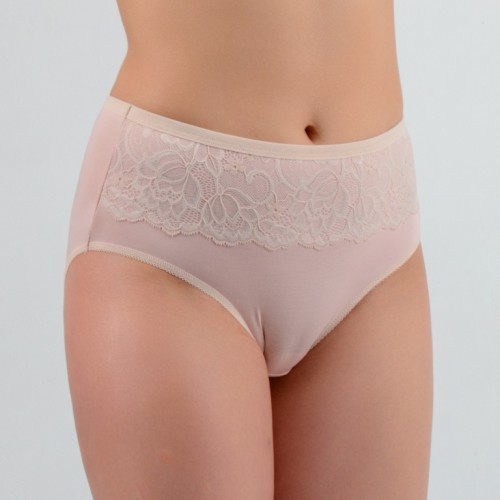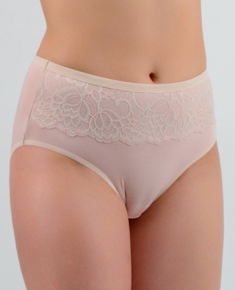 Трусы женские модель Макси "Аврора" с высокой линией талии, со средней высотой бока, комфортная закрытая посадка по ягодицам, по ножкам ажурная резинка, по верху передней части изделия отделочная кружевная деталь.