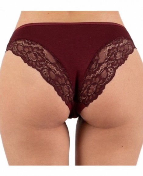 Слипы "Адель", с низкой посадкой, узким боком, цельнокроеная ластовица, задняя часть комбинирована из материала и кружевных частей, срез талии и ножек по переду окантован резинкой.