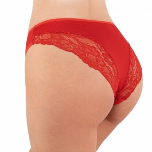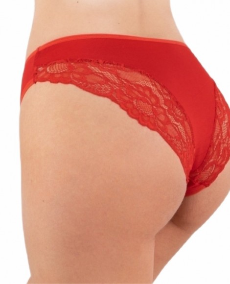 Слипы "Адель", с низкой посадкой, узким боком, цельнокроеная ластовица, задняя часть комбинирована из материала и кружевных частей, срез талии и ножек по переду окантован резинкой.