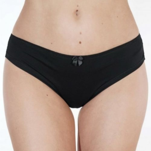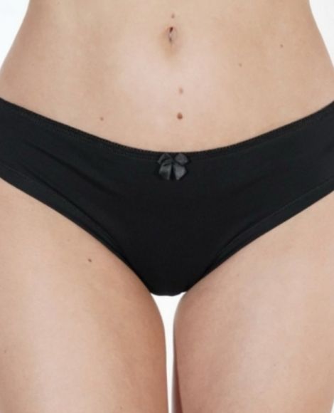 Трусы женские типа Бразильяна "Лорена", с низкой посадкой и открытой ластовицей. Задняя часть изделия выполнена из эластичного кружева со швом по центру. Талия обработана ажурной резинкой, срез ножек спереди окантован основной тканью. На передней части изделия декоративный бант.